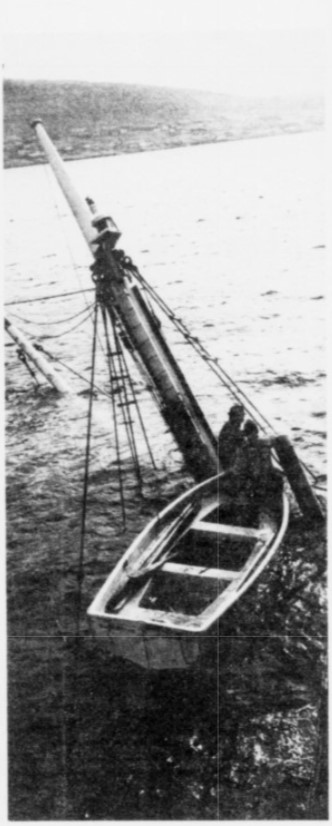 Stutt eftir fekk Kambur ein sjógv afturat, og tá royna teir tríggir, sum stóðu í lúkuni, at fáa boyulúkuna aftur, men teir fingu hana ikki aftur.