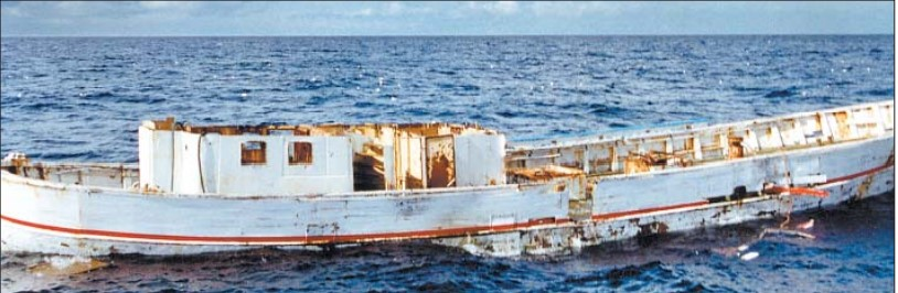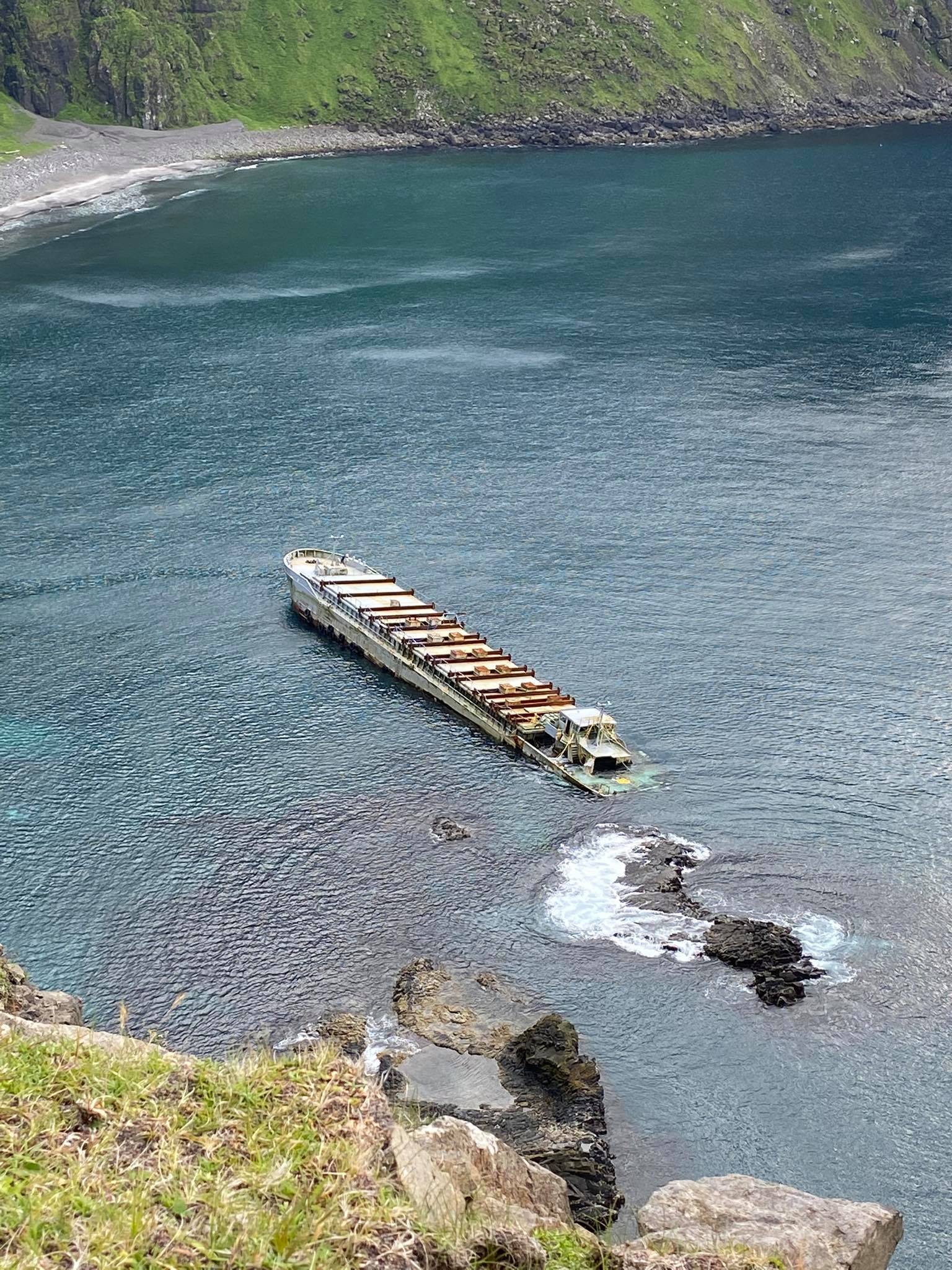 Hetta stóra og prýðiliga fari møtti lagnuni á Skipahellu, sum er norðan fyri Kvívík, stórur partur rak útmóti Mykines. Ein partur rak til Hvalba