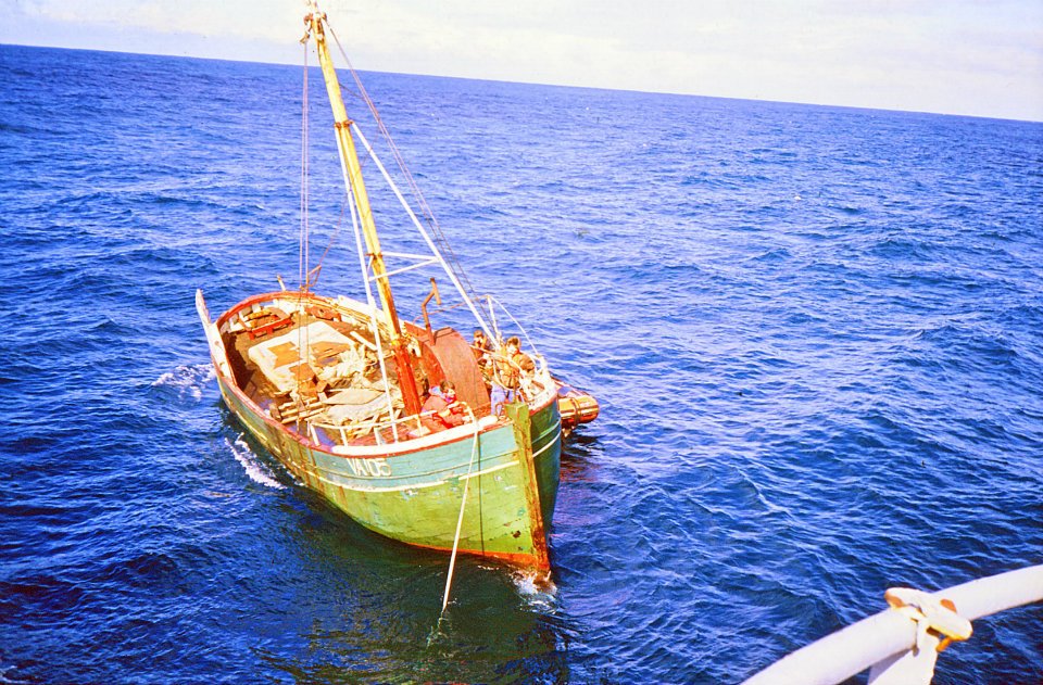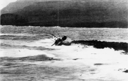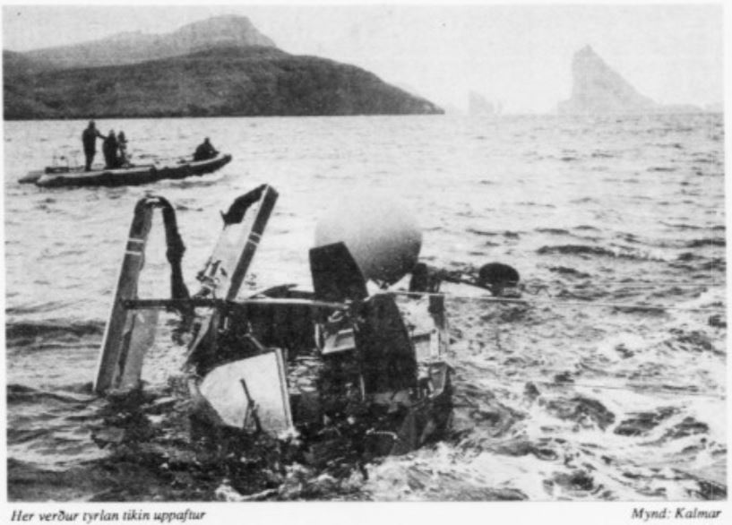 “Kl 1250 fekk MRCC boð um at ein útróðrarbátur var farin at leka og fleyt tungur í sjónum. Tveir menn vóru umborð og báðir vóru farnir í bjargingardraktir. Báturin var tá staddur 4-5 fjórðingar vestur úr Sandoynni. […] Ikki bar til at fáa pumpu umborð, av tí at líkindini vóru sera vánalig. Kl 1530 var avgjørt at rýma frá tí koppaða bátinum. Orsakað av líkindunum og at tað fór at myrkja skjótt, var ikki ráðiligt at gera nakað við hálvda bátin.”