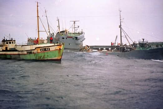 […] Tríggir mans stóðu í lúkuni og gjørdu klárt at taka boyuna, tá ið Kambur fyrst fekk ein sjógv.